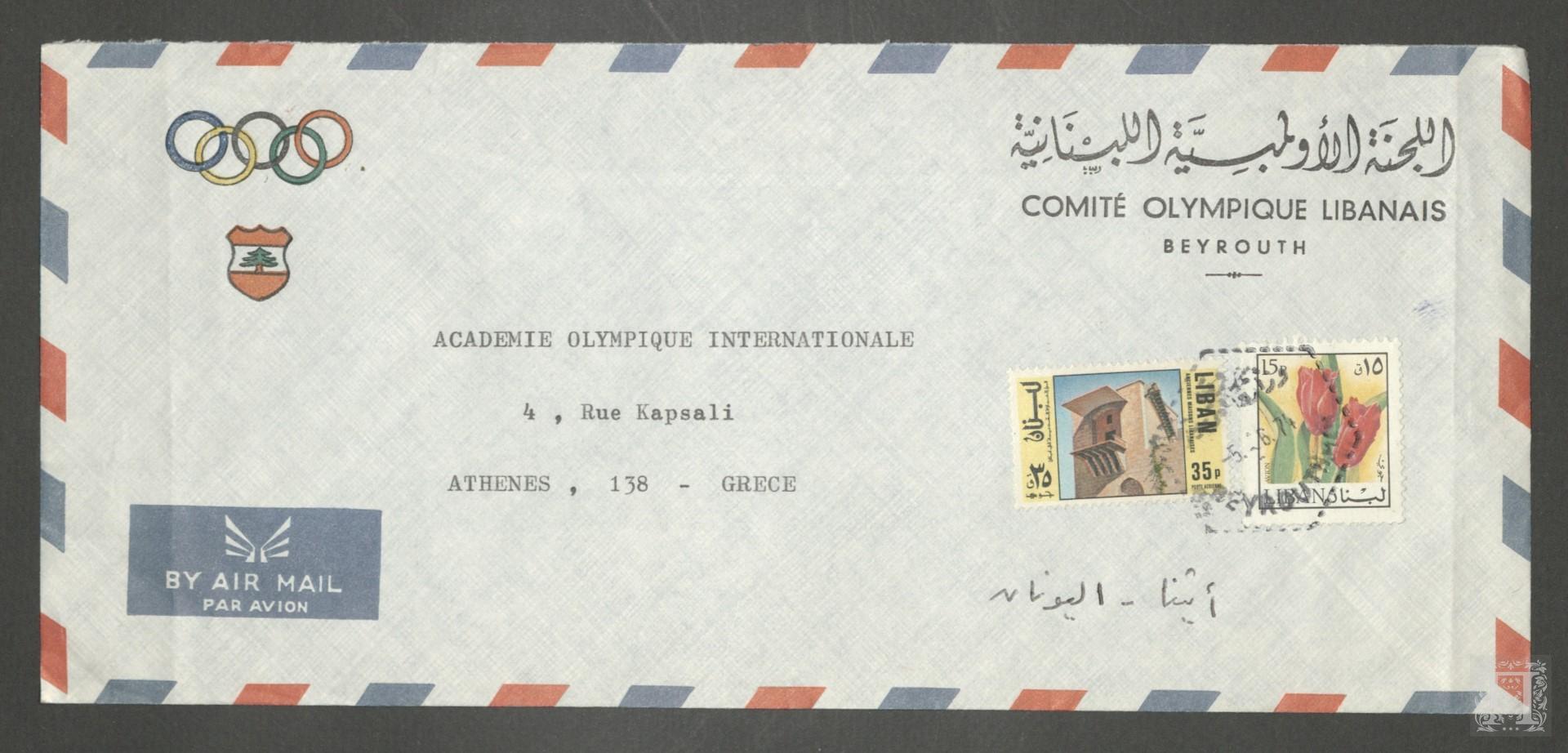 Τίτλος: Ταχυδρομικός φάκελος της Ολυμπιακής Επιτροπής του Λιβάνου με γραμματόσημα από το Λίβανο προς την Διεθνή Ολυμπιακή Ακαδημία