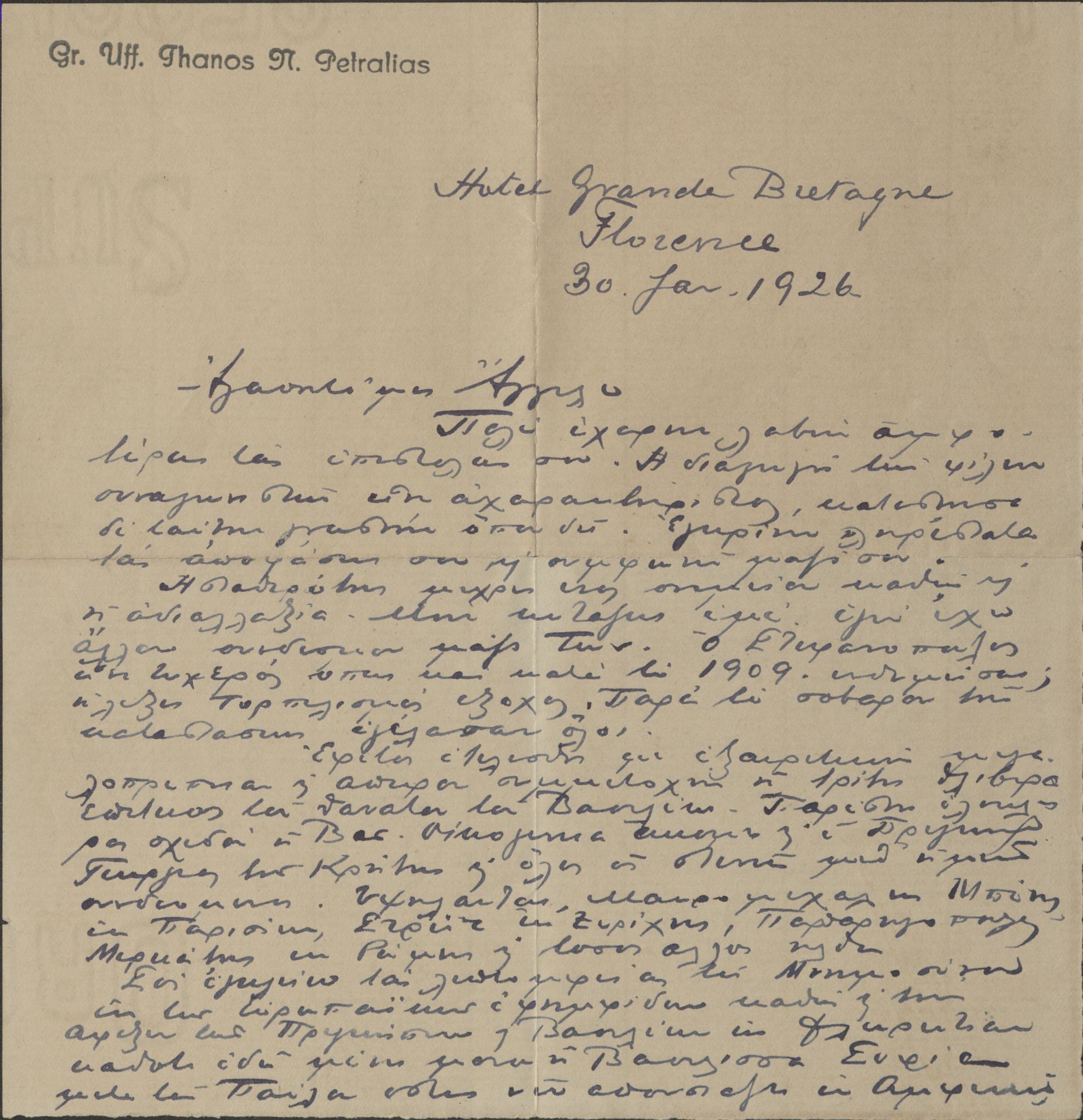 Επιστολή του Θάνου Πετραλιά προς την Αγγελή Πετραλιά