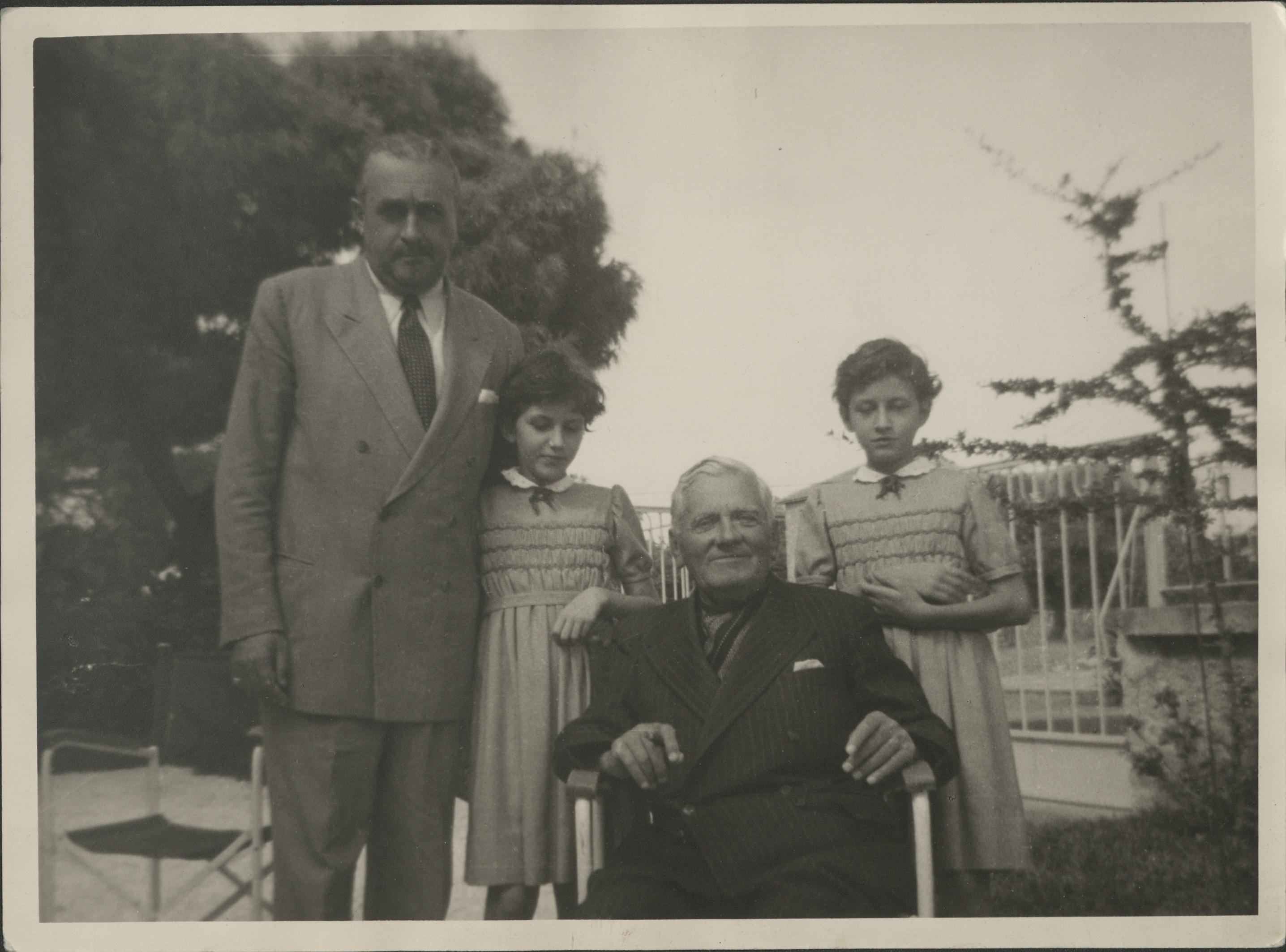Ο Θάνος Πετραλιάς (κέντρο καθήμενος), ο Επαμεινώνδας Πετραλιάς και οι δύο κόρες Φάνη και Τίτη Πετραλιά στη Δίβρη...